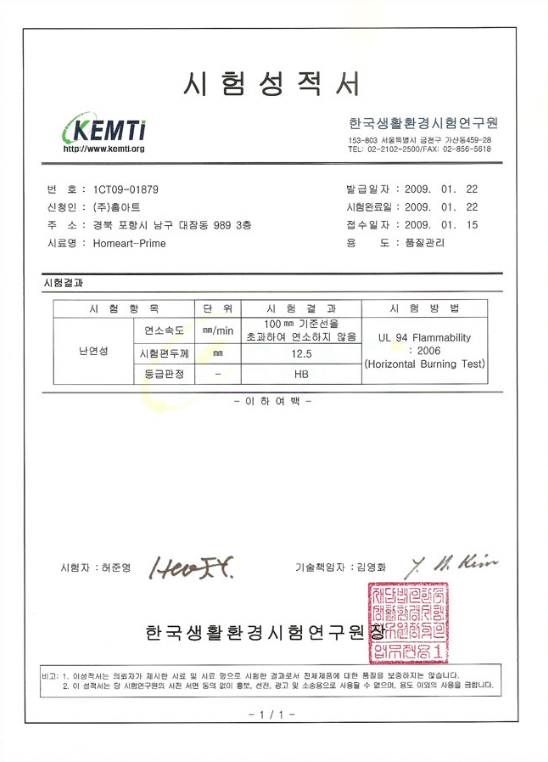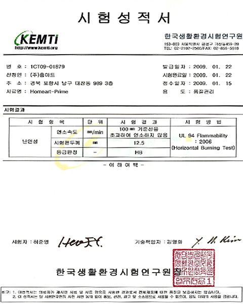 홈아트프라임 시험성적서